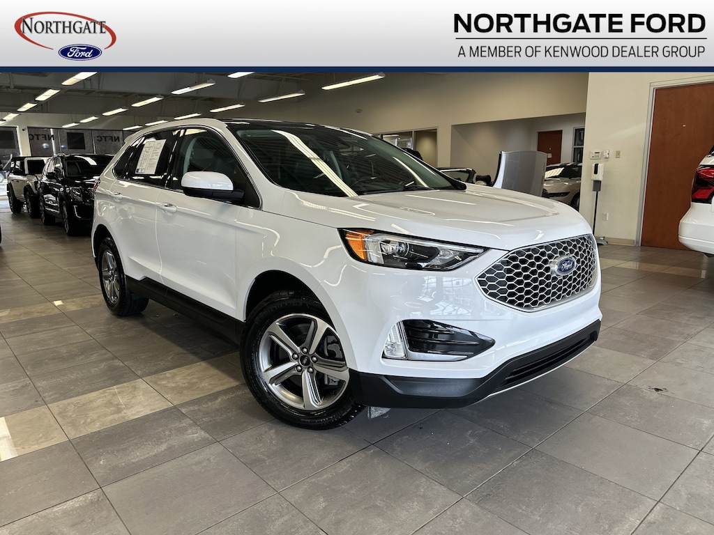 THIS VEHICLE ALSO HAS THE FOLLOWING OPTIONS AND FEATURES:Convenience Package (110V/150W AC Power Outlet, Fog Lamps w/Iconic Silver Bezel, Perimeter Alarm, Power Liftgate, Remote Start System, Universal Garage Door Opener (UGDO), and Wireless Charging Pad), Equipment Group 201A, Edge SEL, 4D Sport Utility, AWD, ActiveX Trimmed Heated Bucket Seats, AM/FM radio: SiriusXM with 360L, Automatic temperature control, Panoramic Vista Roof, Rear Parking Sensors, SiriusXM w/360L, SYNC 4A w/Enhanced Voice Recognition, Wheels: 18" Bright-Machined Aluminum, 3.80 Axle Ratio, 4-Wheel Disc Brakes, 6 Speakers, ABS brakes, Air Conditioning, Alloy wheels, AM/FM Stereo, Auto High-beam Headlights, Auto-dimming Rear-View mirror, Brake assist, Bumpers: body-color, Compass, Delay-off headlights, Driver door bin, Driver vanity mirror, Dual front impact airbags, Dual front side impact airbags, Electronic Stability Control, Emergency communication system: SYNC 4 911 Assist, FordPass Connect, Four wheel independent suspension, Front anti-roll bar, Front Bucket Seats, Front Center Armrest w/Storage, Front dual zone A/C, Front reading lights, Fully automatic headlights, Heated door mirrors, Heated front seats, Heated Steering Wheel, Illuminated entry, Knee airbag, Leather steering wheel, Low tire pressure warning, Occupant sensing airbag, Outside temperature display, Overhead airbag, Overhead console, Panic alarm, Passenger door bin, Passenger vanity mirror, Power door mirrors, Power driver seat, Power passenger seat, Power steering, Power windows, Rear anti-roll bar, Rear reading lights, Rear seat center armrest, Rear window defroster, Rear window wiper, Remote keyless entry, Speed control, Speed-Sensitive Wipers, Split folding rear seat, Spoiler, Steering wheel mounted audio controls, Tachometer, Telescoping steering wheel, Tilt steering wheel, Traction control, Trip computer, and Variably intermittent wipers.