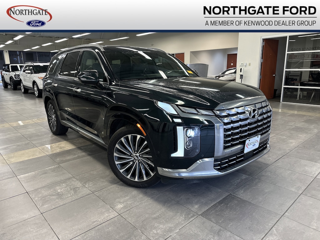 THIS VEHICLE ALSO HAS THE FOLLOWING OPTIONS AND FEATURES:Option Group 01, Palisade Calligraphy, 4D Sport Utility, AWD, Black w/Premium Nappa Leather Seat Trim, Auto High-beam Headlights, Automatic temperature control, harman/kardon® Speakers, Heads-Up Display, Navigation System, Power Liftgate, Power moonroof, Radio: AM/FM/MP3 Premium Audio System, Rain sensing wipers, Rear audio controls, Wheels: 20" x 7.5J Calligraphy Exclusive Alloy, 12 Speakers, 3.648 Axle Ratio, 3rd row seats: split-bench, 4-Wheel Disc Brakes, ABS brakes, Air Conditioning, Alloy wheels, AM/FM radio: SiriusXM, Apple CarPlay & Android Auto, Auto-dimming door mirrors, Auto-dimming Rear-View mirror, Auto-leveling suspension, Brake assist, Bumpers: body-color, Cargo Cover/Screen, Carpeted Floor Mats, Compass, Delay-off headlights, Driver door bin, Driver vanity mirror, Dual front impact airbags, Dual front side impact airbags, Electronic Stability Control, Emergency communication system: Blue Link Connected Car Service (3-year complimentary subscription), Exterior Parking Camera Rear, Four wheel independent suspension, Front anti-roll bar, Front Bucket Seats, Front Center Armrest, Front dual zone A/C, Front reading lights, Fully automatic headlights, Garage door transmitter: HomeLink, Heated & Ventilated Front Bucket Seats, Heated door mirrors, Heated front seats, Heated rear seats, Heated steering wheel, Illuminated entry, Knee airbag, Low tire pressure warning, Memory seat, Occupant sensing airbag, Outside temperature display, Overhead airbag, Overhead console, Panic alarm, Passenger door bin, Passenger vanity mirror, Power door mirrors, Power driver seat, Power passenger seat, Power steering, Power windows, Premium Nappa Leather Seat Trim, Radio data system, Rear air conditioning, Rear anti-roll bar, Rear reading lights, Rear side impact airbag, Rear window defroster, Rear window wiper, Reclining 3rd row seat, Remote keyless entry, Security system, Speed control, Speed-sensing steering, Split folding rear seat, Spoiler, Steering wheel mounted audio controls, Tachometer, Telescoping steering wheel, Tilt steering wheel, Traction control, Trip computer, Turn signal indicator mirrors, Variably intermittent wipers, Ventilated front seats, and Ventilated rear seats.