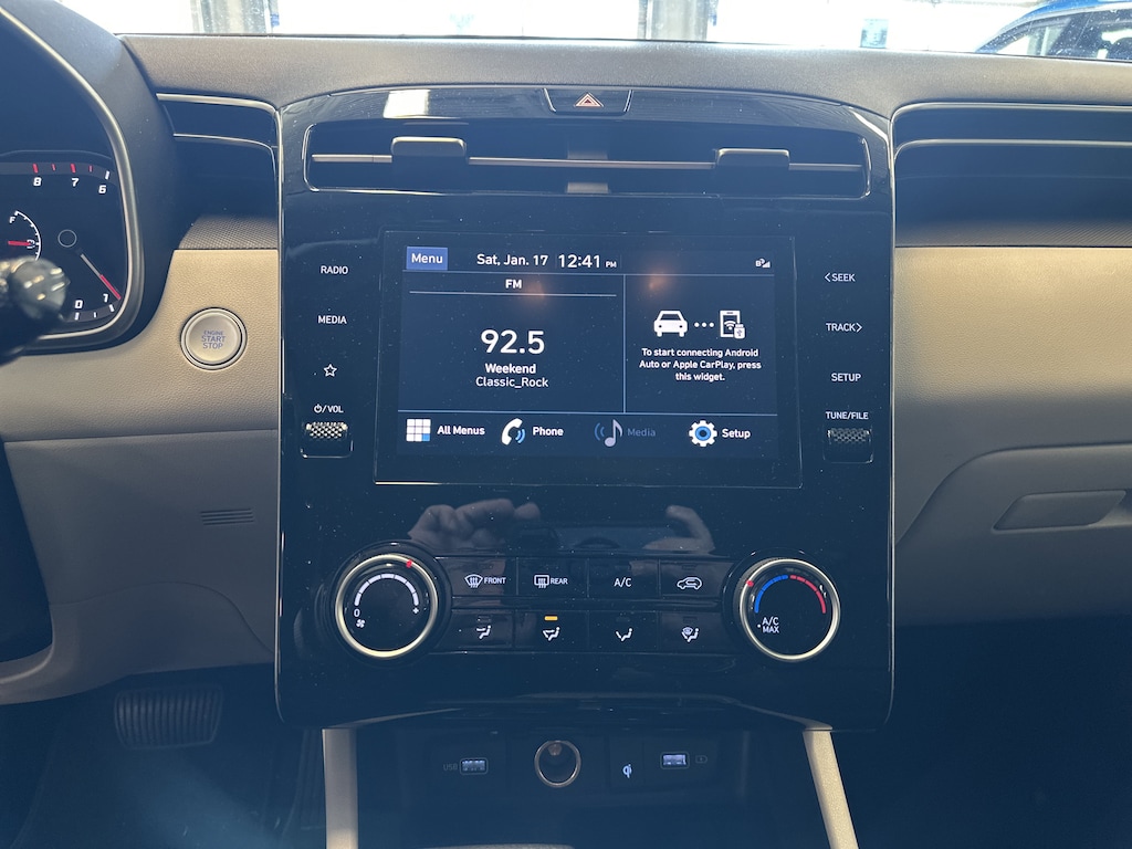 THIS VEHICLE ALSO HAS THE FOLLOWING OPTIONS AND FEATURES:Option Group 01, Tucson SEL, 4D Sport Utility, Gray w/H-Tex Seat Trim, AM/FM radio: SiriusXM, Apple CarPlay & Android Auto, Auto High-beam Headlights, Heated Front Bucket Seats, Power driver seat, Power Liftgate, Radio: AM/FM/HD/SiriusXM Audio System, Wheels: 17" x 7.0J" Alloy, 3.648 Axle Ratio, 4-Wheel Disc Brakes, 6 Speakers, ABS brakes, Air Conditioning, Alloy wheels, Brake assist, Bumpers: body-color, Cargo Cover, Cargo Net, Cargo Tray, Carpeted Floor Mats, Delay-off headlights, Driver door bin, Driver vanity mirror, Dual front impact airbags, Dual front side impact airbags, Electronic Stability Control, Emergency communication system: Blue Link Connected Car Service (3-year complimentary subscription), Four wheel independent suspension, Front and Rear Mudguards, Front anti-roll bar, Front Bucket Seats, Front Center Armrest, Front reading lights, Fully automatic headlights, H-Tex Seat Trim, Heated door mirrors, Heated front seats, Illuminated entry, Low tire pressure warning, Occupant sensing airbag, Outside temperature display, Overhead airbag, Overhead console, Panic alarm, Passenger door bin, Passenger vanity mirror, Power door mirrors, Power steering, Power windows, Radio data system, Rear anti-roll bar, Rear seat center armrest, Rear window defroster, Rear window wiper, Remote keyless entry, Roof rack: rails only, Security system, Speed control, Split folding rear seat, Spoiler, Stain & Odor Resistant Cloth Seat Trim, Steering wheel mounted audio controls, Tachometer, Telescoping steering wheel, Tilt steering wheel, Traction control, Trip computer, Turn signal indicator mirrors, and Variably intermittent wipers.