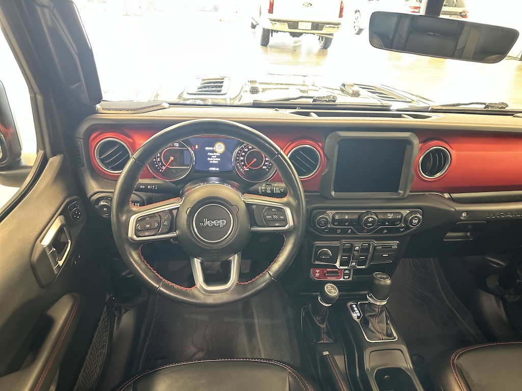 THIS VEHICLE ALSO HAS THE FOLLOWING OPTIONS AND FEATURES:8.4" Radio & Premium Audio Group (1-Year SiriusXM Guardian Trial, 4G LTE Wi-Fi Hot Spot, 5-Year SiriusXM Traffic Service, 5-Year SiriusXM Travel Link Service, 8.4" Touchscreen Display, Alpine Premium Audio System, Auto-Dimming Rear-View Mirror, Emergency/Assistance Call, For Details, Visit DriveUconnect.com, GPS Navigation, HD Radio, Off-Road Info Pages, Radio: Uconnect 4C Nav w/8.4" Display, SiriusXM Traffic Plus, and SiriusXM Travel Link), Cold Weather Group (Heated Front Seats and Heated Steering Wheel), LED Lighting Group (Daytime Running Lamps LED Accents, Front LED Fog Lamps, LED Premium Reflector Headlamps, and LED Taillamps), Quick Order Package 25R, Steel Bumper Group (Steel Front Bumper and Steel Rear Bumper), Wrangler Unlimited Rubicon, 4D Sport Utility, 4WD, Black w/Leather Trimmed Bucket Seats, Automatic temperature control, Body Color 3-Piece Hard Top, Electronic Stability Control, ParkView Rear Back-Up Camera, Performance Suspension, Wheels: 17" x 7.5" Machined w/Black Pockets, 4-Wheel Disc Brakes, 4.10 Rear Axle Ratio, 8 Speakers, ABS brakes, Air Conditioning, Alloy wheels, AM/FM radio: SiriusXM, Apple CarPlay/Android Auto, Aux Battery, Body Color Fender Flares, Brake assist, Compass, Delay-off headlights, Driver door bin, Driver vanity mirror, Dual front impact airbags, Dual front side impact airbags, Front anti-roll bar, Front Bucket Seats, Front Center Armrest w/Storage, Front dual zone A/C, Front fog lights, Front License Plate Bracket, Front reading lights, Fully automatic headlights, Garage door transmitter, Heated door mirrors, Illuminated entry, Integrated Off-Road Camera, Integrated roll-over protection, Leather steering wheel, Low tire pressure warning, MOPAR All-Weather Floor Mats (DISC), MOPAR Grab Handle Kit, MOPAR Hardtop Headliner, Non-Lock Fuel Cap w/o Discriminator, Occupant sensing airbag, Outside temperature display, Panic alarm, Passenger door bin, Passenger vanity mirror, Power door mirrors, Power steering, Power windows, Radi